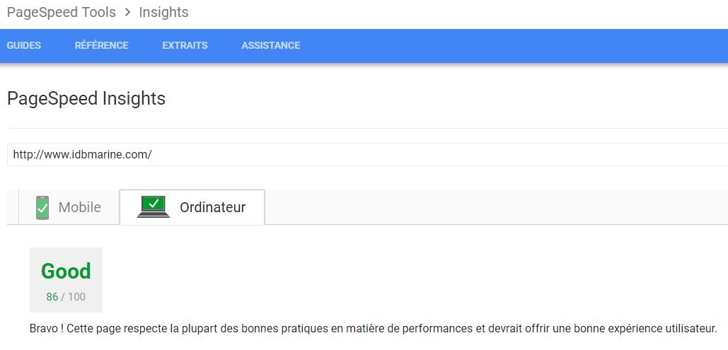 L’outil Page PageSpeed Insights mesure les performances d’une page sur les appareils mobiles et les appareils de bureau. Le score PageSpeed va de 0 à 100 points. Plus haut est le score, meilleures sont les performances, et un score de 85 ou plus indique que la page s’exécute bien. Nous en sommes à 86 et on y travaille encore…