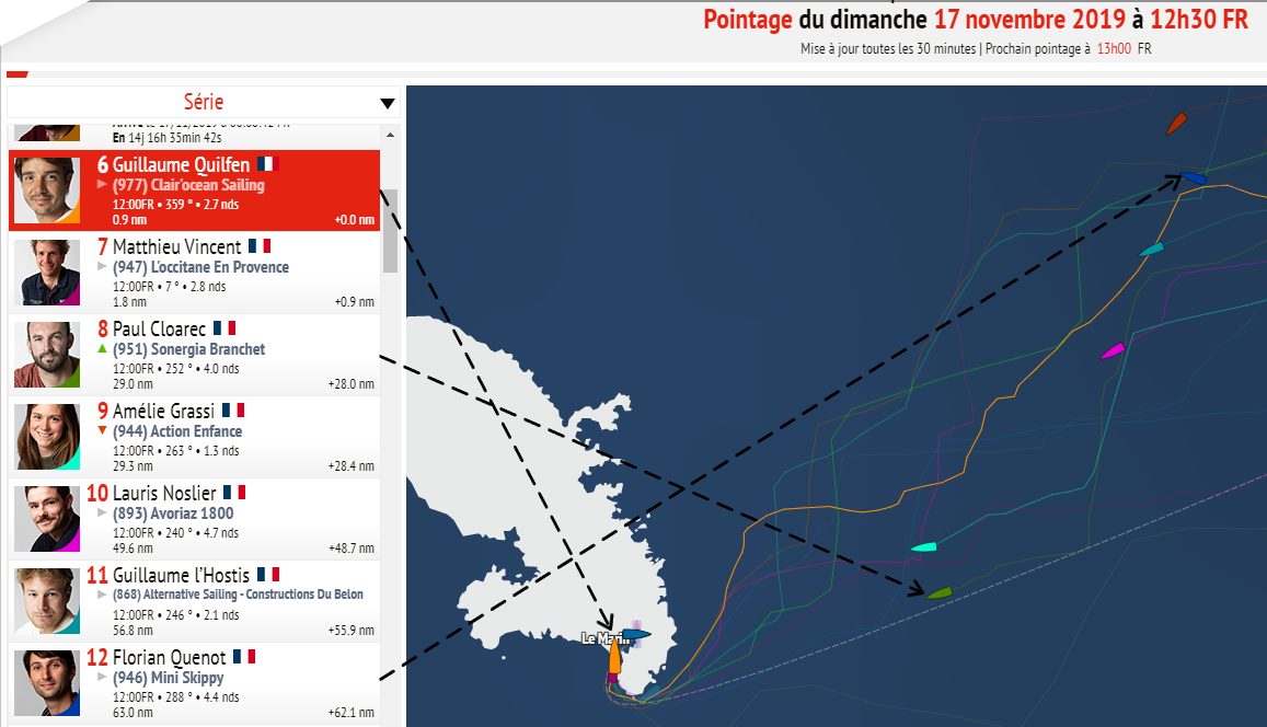 Patrick DIJOUD s’est fait enfermer dans une bulle au sud de la trajectoire et paye cher son placement. Actuellement il est 30 ième.
